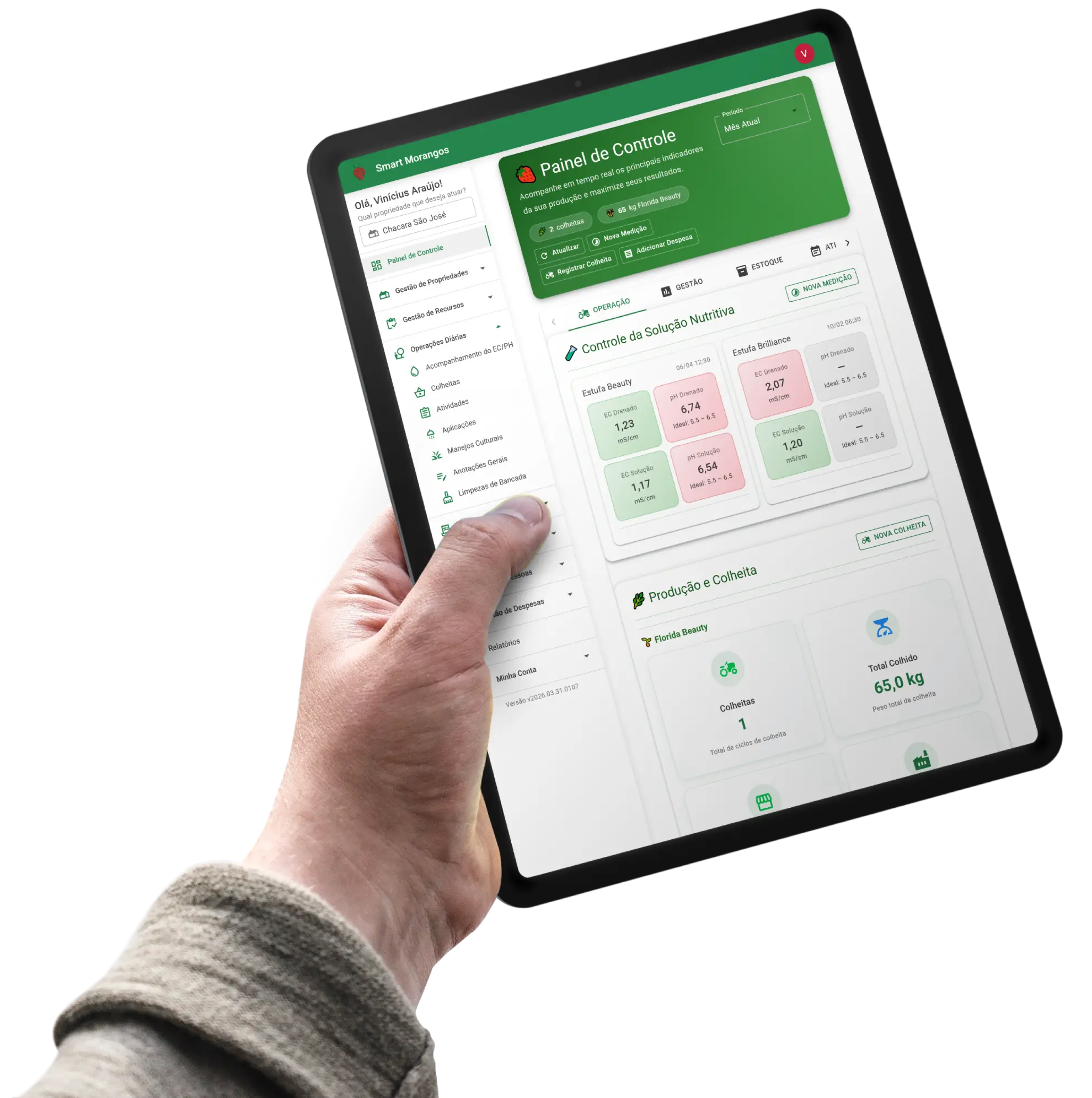 O SmartMorangos é um caderno de campo digital e sistema de gestão rural para produtores de morango e hidroponia. Organize talhões, bancadas, colheitas, pragas, estoque e financeiro em um único lugar. Feito para quem quer previsibilidade, rastreabilidade e lucro real.